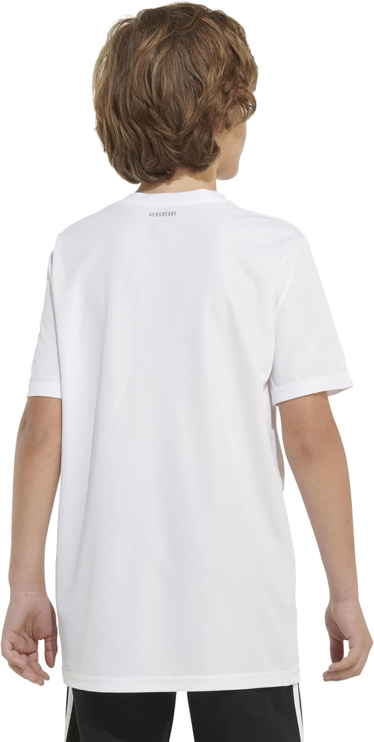 Two iconic symbols come together in this adidas tee, where the stars and stripes meet the classic 3-Bar logo. The USA flag fill creates a distinctive design that stands out. Made from a soft cotton-polyester blend, it features a regular fit and rib-knit crewneck that feels comfortable during playtime or school activities. The eye-catching design adds visual interest to everyday wear. Whether it's a day at the park or a casual outing, this versatile tee combines classic American imagery with adidas' signature styling for active kids.
