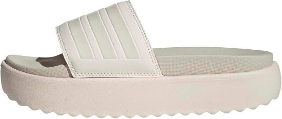 These women's adidas slides feature a raised EVA platform to deliver an elevated, lightweight feel. They have an easy-wearing fit with an updated look. As casual poolside comfort or as an anytime style, the padded bandage upper adds a cozy feel. Iconic 3-Stripes provide a heritage finish.