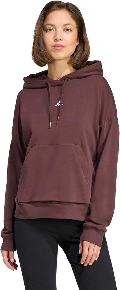 Ready for slow mornings or quick errands, the women's adidas Essentials Small Logo FeelCozy Hoodie keeps you flowing with soft fleece comfort and a relaxed fit. A drawcord hood adjusts the warmth, and the kangaroo pocket holds what matters.