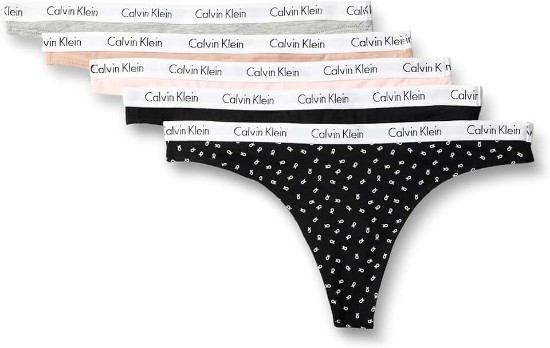 Classic and essential, these Calvin Klein thongs come in a 5-pack and are crafted with extra soft cotton stretch for flexible comfort. Designed with a signature repeating logo elastic waistband, a fully lined gusset, minimal rear coverage and seaming details.