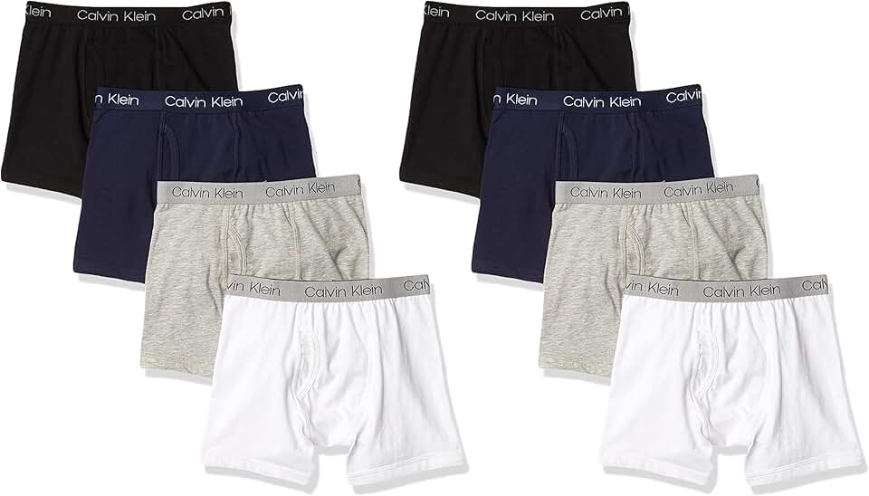 Superior Comfort: Calvin Klein Boys Underwear 8 Pack Boxer Briefs are crafted from 95% Cotton and 5% Spandex for exceptional comfort all day long.