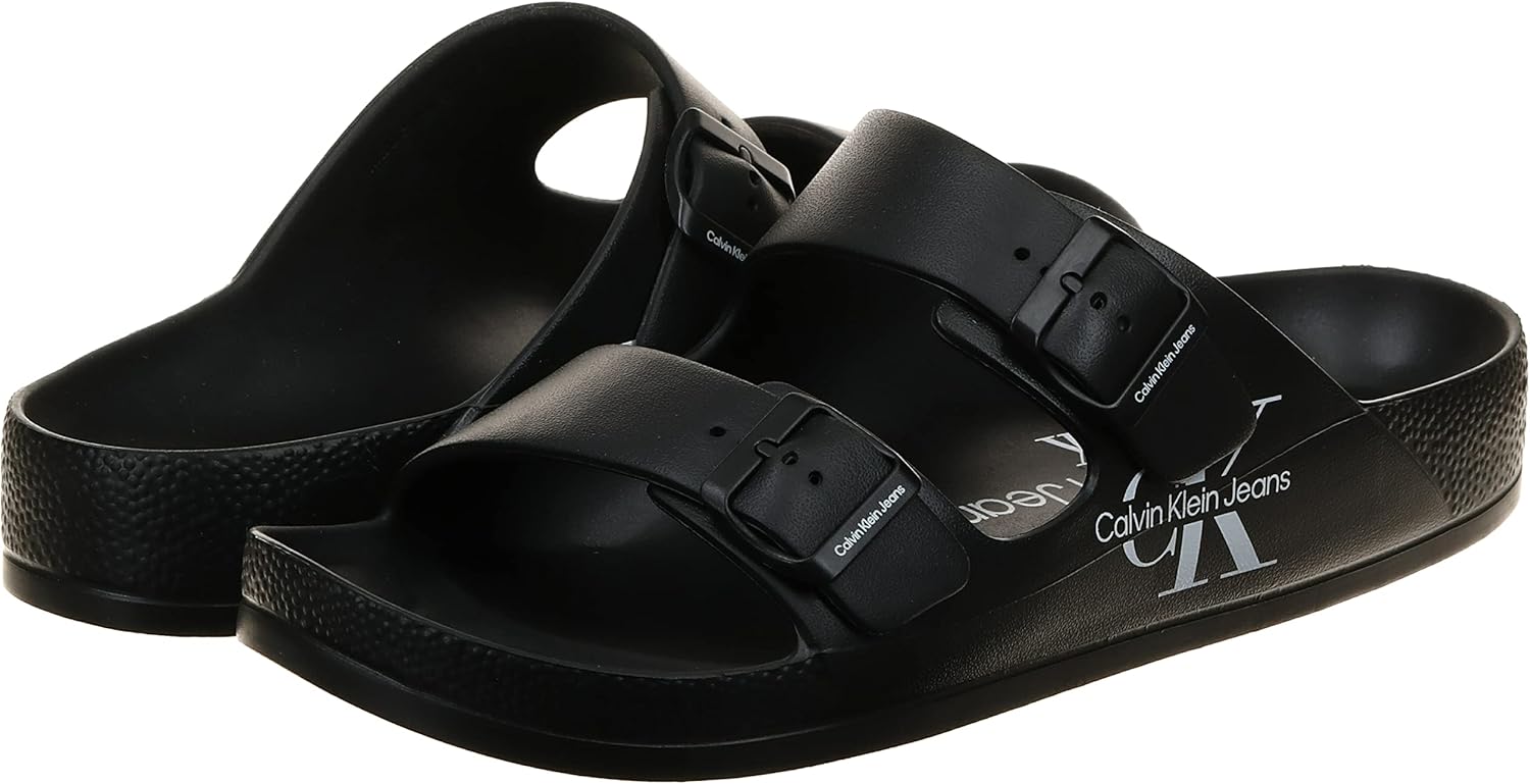 Prepare for the heat with the Zion slide from Calvin Klein. Detailed footbeds contour to your foot while providing heightened details with dual adjustable straps and monogram branding