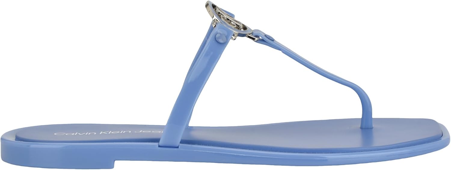 The Ellye Sandal from Calvin Klein enhances your style with effortless sophistication. This slip-on sandal features a smoothly finished polyurethane upper and a sleek silhouette, making it a great choice for last-minute occasions when you want to look polished and stylish. The square toe adds a modern touch and creates a fresh, clean look that pairs easily with everything from relaxed denim to flowing lightweight dresses. Its unlined construction keeps it lightweight, breathable, and comfortable for all-day wear. A durable synthetic rubber outsole provides reliable support and grip while walking. Designed for women, this sandal is ideal for casual outings, day-to-night wear, and warm-weather occasions. A versatile choice in slip on sandals and women's slip on sandals, it fits easily into women's sandals summer and women's summer sandals wardrobes. This style also works well for shoppers looking for women's casual sandals, women's comfortable sandals, comfortable walking sandals for women, and comfortable sandals for women walking. It can be worn for everyday outings, warm-weather events, and casual plans.