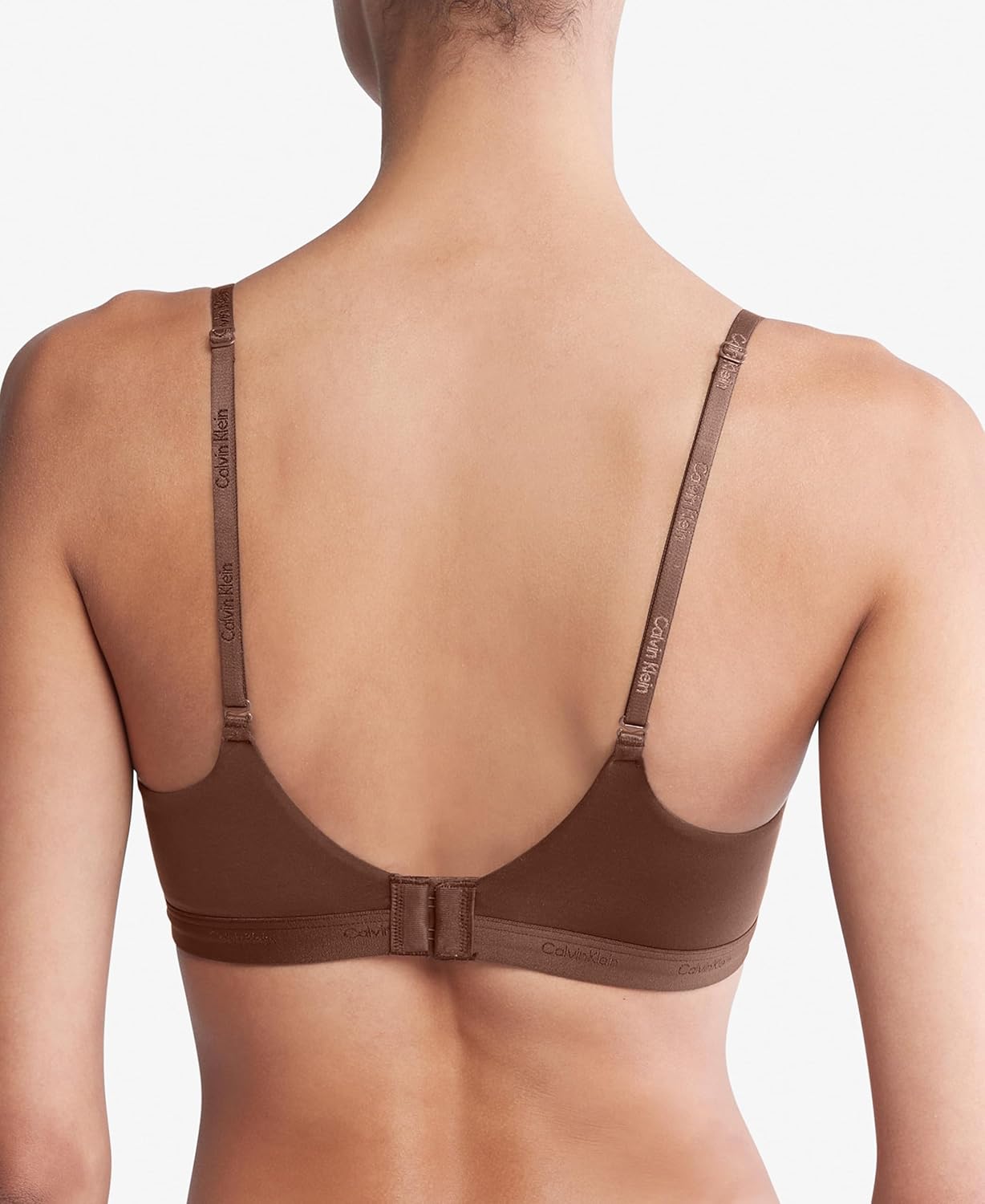 Styled in natural tones with a second skin feel for optimal comfort and support. This Calvin Klein lightly lined bralette features ultra-soft microfiber with a tonal repeating logo band for a flexible fit. Embracing togetherness, united through color.