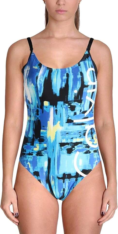 Make a stylish splash in this Calvin Klein women's one-piece swimsuit. Featuring an eye-catching printed design in a refreshing cyan color, this maillot-style swimsuit combines fashion with functionality. The classic silhouette offers full coverage and support, perfect for both swimming and lounging poolside. Designed with quality materials to maintain its shape and color, this swimsuit embodies the sophisticated aesthetic Calvin Klein is known for.
