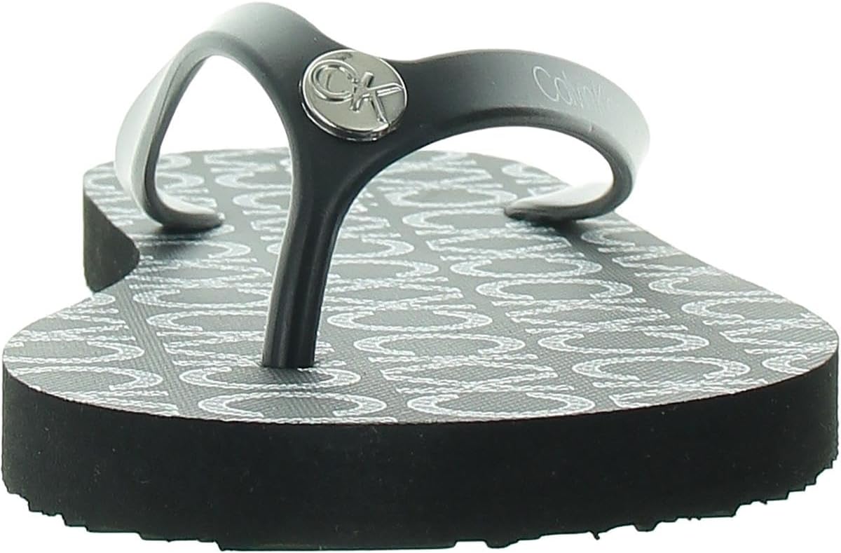 A warm weather essential, the Calvin Klein Sarminya casual sandal! It features an almond shaped toe and CK logo detailing on the footbed. It's perfect for a day at the pool or a day of shopping.