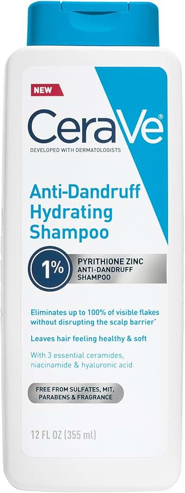 Discover CeraVe Anti-Dandruff Hydrating Shampoo for dandruff and scalp care. Developed with dermatologists, this innovative hair shampoo is designed to eliminate up to 100% of visible flakes* while soothing itch and irritation, all without disrupting the scalp's natural barrier. Formulated with 1% Pyrithione Zinc, a powerful ingredient known for its effectiveness in combating dandruff. *with regular use of system CeraVe Anti-Dandruff Hydrating Medicated Shampoo is more than just a dandruff treatment; it's a comprehensive care system for your hair and scalp. Itchy scalp treatment for dandruff is formulated with three essential skin-identical ceramides, niacinamide, and hyaluronic acid, this dandruff shampoo for women and men not only targets dandruff to support the scalp’s health but also, ensures our hair feels soft, nourished, and smooth. The gentle, pH-balanced formula is allergy-tested and free from sulfates, MIT, dyes, parabens, and fragrance, suitable for sensitive scalps. Medicated dandruff shampoo for all hair types, curl patterns, and color-treated hair, this shampoo for itchy scalp is your go-to for maintaining healthy looking hair. Whether you have straight, wavy, curly, or coily hair, this dry scalp treatment for dandruff is designed to meet your needs. For optimal results, pair it with CeraVe Anti-Dandruff Hydrating Conditioner to remove buildup without stripping away moisture, leaving your hair feeling healthy and soft. Embrace the confidence of flake-free hair with CeraVe's dermatologist-developed formula. Use it at least twice a week or as directed by your doctor, and enjoy the benefits of a scalp that feels calm and hair that looks and feels its best.