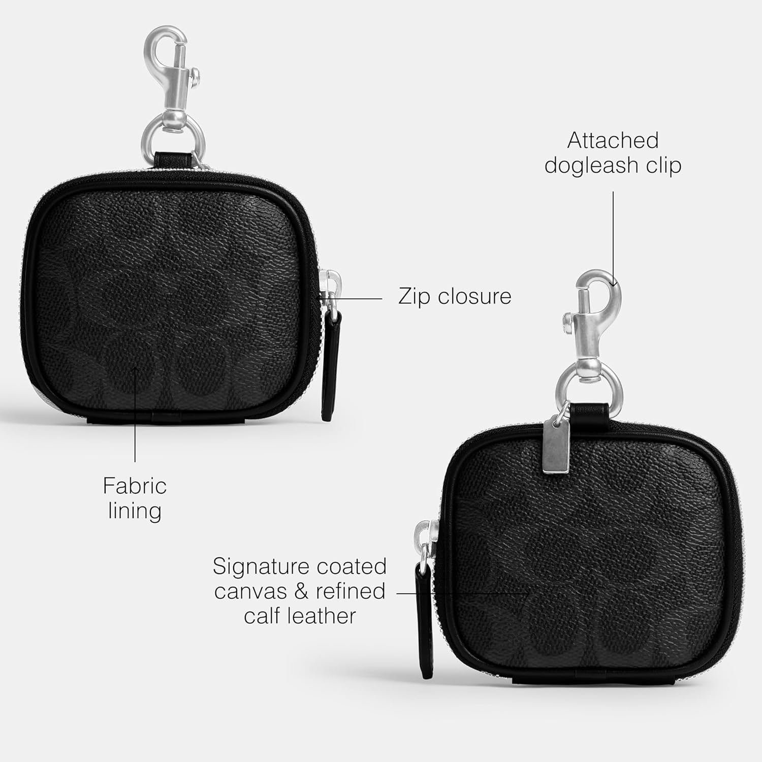 Editor's Notes: Made for the extras (extra essentials, extra style), the Clip On Pouch is crafted of our Signature canvas and is the perfect addition to your favorite Coach bag