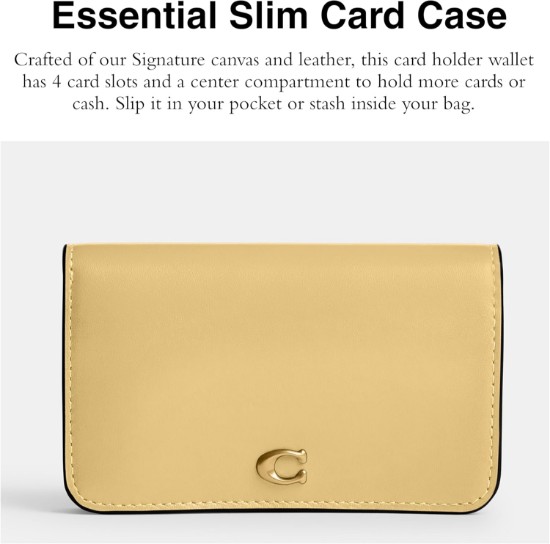 Editor's Notes: Crafted of our Signature canvas and leather, this card holder wallet has 4 card slots and a center compartment to hold more cards or cash. Slip it in your pocket or stash inside your bag