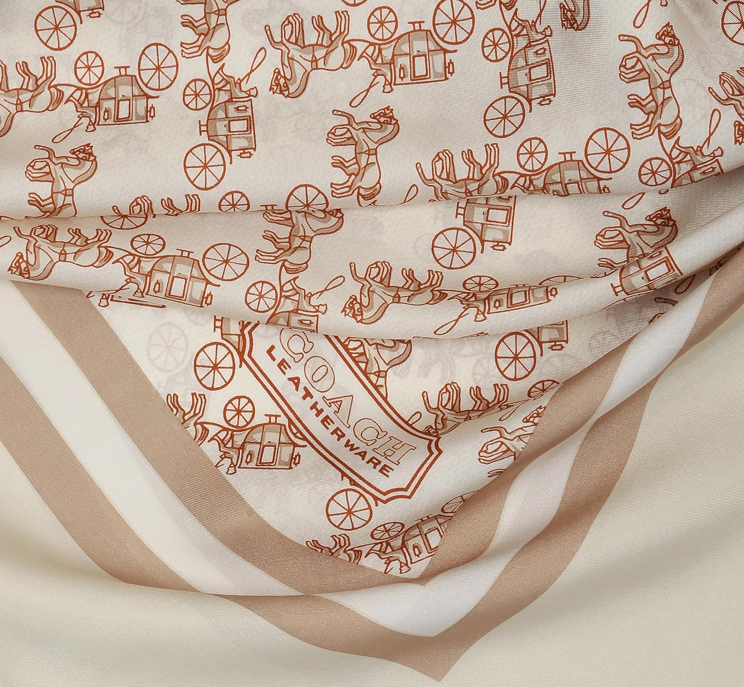EDITOR'S NOTES: This lightweight silk square scarf is detailed with the iconic Coach Horse and Carriage motif, which was first introduced in the 1950s. It features the Coach Badge and is finished with a solid border.