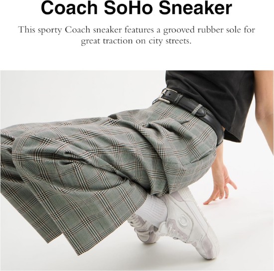 Editor's Notes: Our Coach Soho Sneaker is inspired by the courageous free spirit of our hometown New York City and built to keep pace with life on the go. These comfortable women's sneakers are finished with a grooved rubber outsole detailed with a map of Manhattan