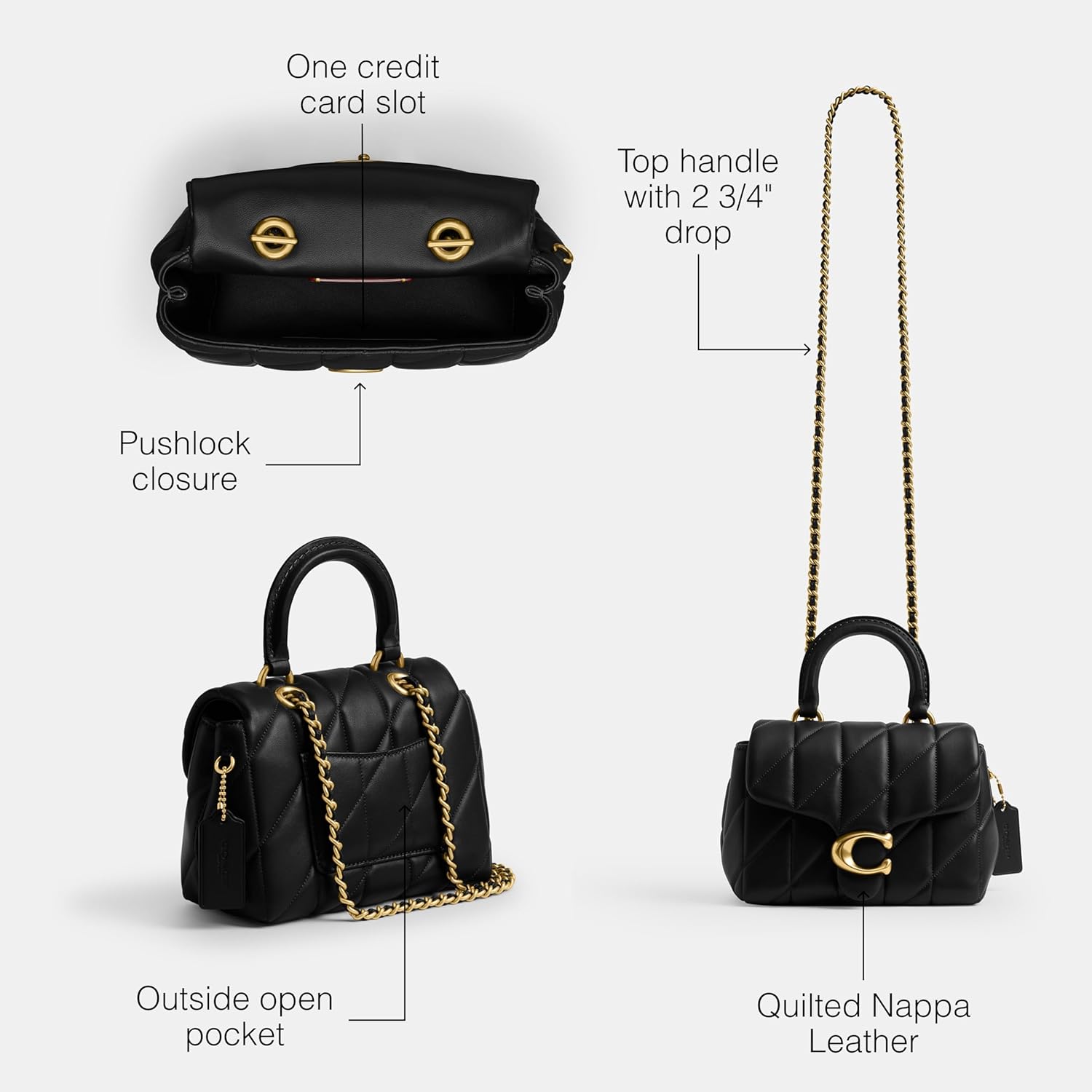Hands down, this more petite version of our structured Tabby bag with a top handle adds a layer of sophistication. Crafted of smooth napa leather and finished pushlock closure for easy access and a chain strap to go hands free. Features one credit card slot, pushlock closure, leather lining, top handle with 2 3/4' drop, outside open pocket, detachable chain strap with 20 1/2' drop for shoulder or crossbody wear. 7 1/2' (L) x 5 1/2' (H) x 3 3/4' (W)