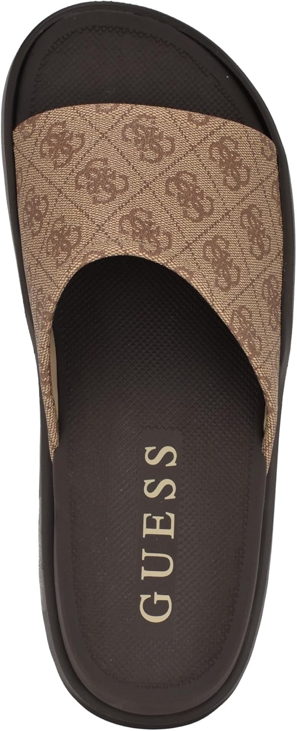 The GUESS Magaria slide has a modernized twist and GUESS signature quattro G logoing for added appeal. These slides can be worn to more than just the beach. Est. 1981, Guess is a global lifestyle brand and a symbol of a young, adventurous lifestyle.