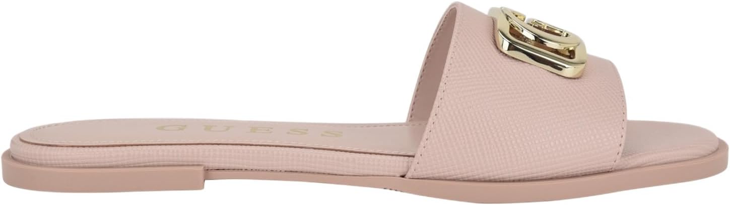 Sophisticated and stylish, the GUESS Adrinna casual sandals are a wardrobe must have! It features a hardware cutout G logo with contrasting straw upper material you'll be sure to love. Est. 1981, Guess is a global lifestyle brand and a symbol of a young, adventurous lifestyle.