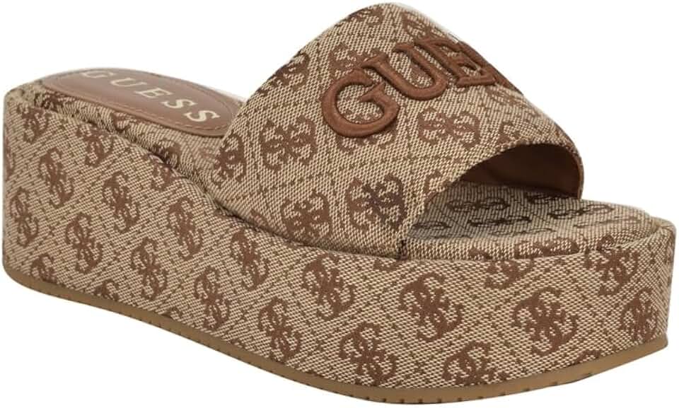 Slip-on versatility makes the Guess Bintai an easy choice in your closet! This slide silhouette is upgraded by a platform design and a single band with GUESS logo embroidery. Est. 1981, Guess is a global lifestyle brand and a symbol of a young, adventurous lifestyle.