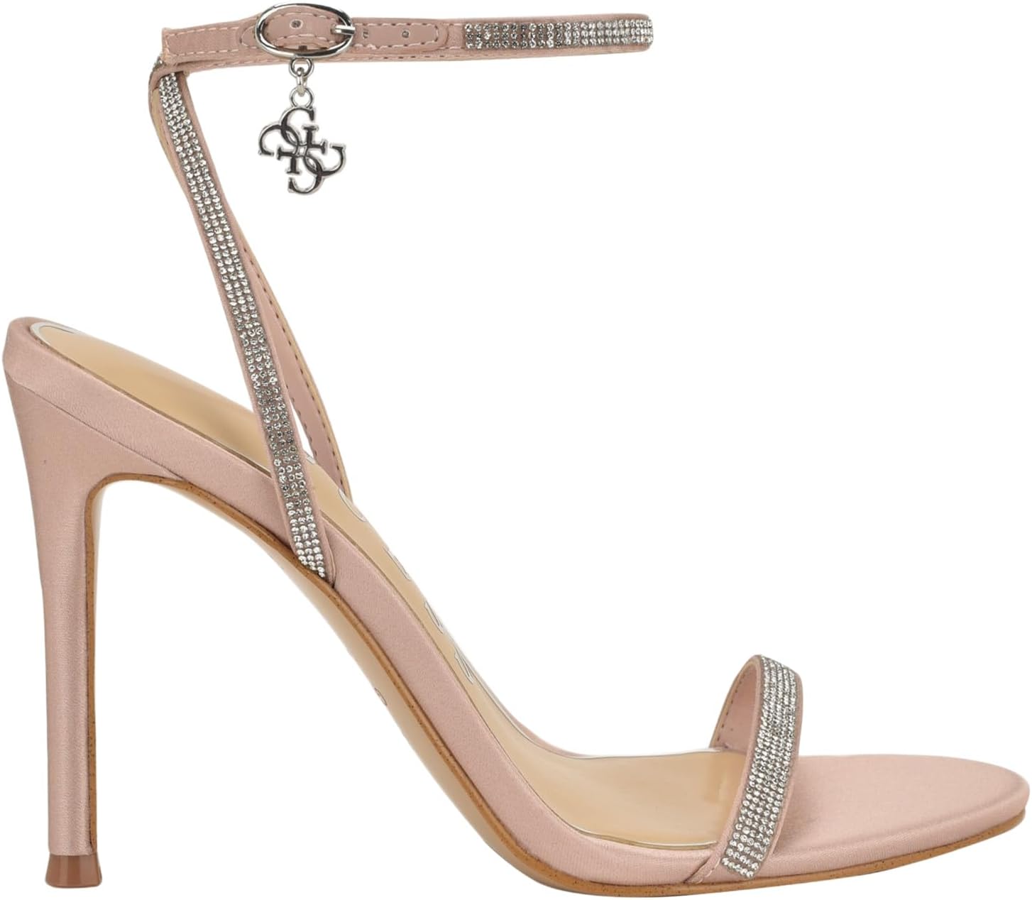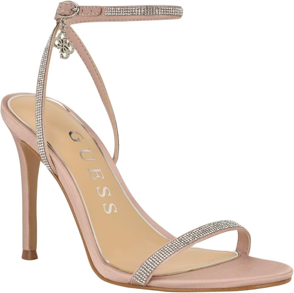 Shine with sophistication in this GUESS stiletto heel. Featuring a sleek metallic finish, delicate rhinestone straps, and an ankle buckle with charm detail, it offers glamour and elegance in every step—perfect for weddings, parties, or an elevated night-out look.