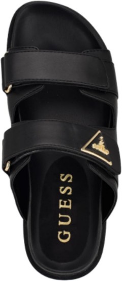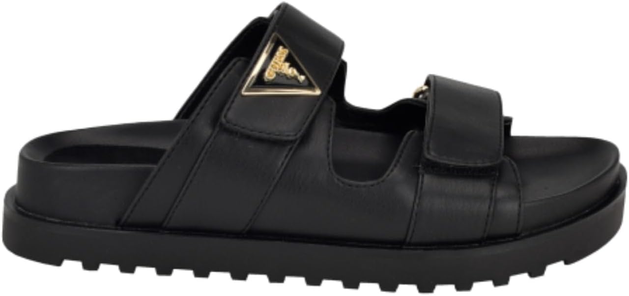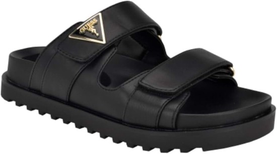 This double band logo slide from GUESS is a must-have that hits the season's trend perfectly. This sandal has a comfortable footbed with adjustable straps. Est. 1981, Guess is a global lifestyle brand and a symbol of a young, adventurous lifestyle.