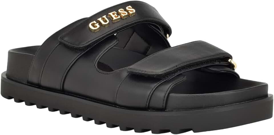 Go from spring – to – summer in the GUESS Fabulon slide. The double strap with slight logo hardware detailing and the molded footbed will give you comfort while elevating any look. Est. 1981, Guess is a global lifestyle brand and a symbol of a young, adventurous lifestyle.