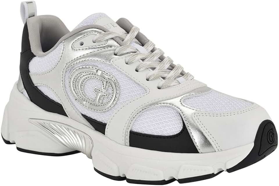 Join the trend of chunky lace up sneakers wearing the Guess Ibitha. This lace-up sneaker includes touches of metallics while still keeping it simple making it an easy go to option in your closet. Est. 1981, Guess is a global lifestyle brand and a symbol of a young, adventurous lifestyle.
