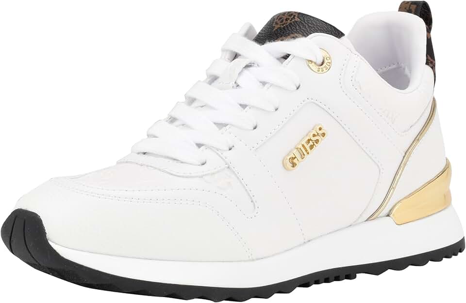 Sport-Luxe Statement: The Kadlin blends modern athletic design with GUESS’s signature glam details — a sleek, running-inspired silhouette elevated with metallic gold accents and monogram logo prints