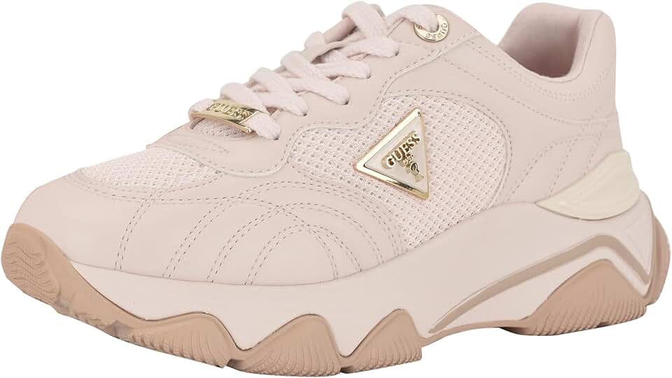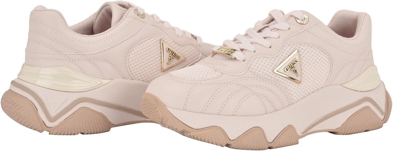 Bring some edge to a sporty look with the Moeann GUESS sneaker. This sneaker is ready to hit the streets featuring the mixed material upper, metal triangle embellished logo and chunky outsole. Est. 1981, Guess is a global lifestyle brand and a symbol of a young, adventurous lifestyle.