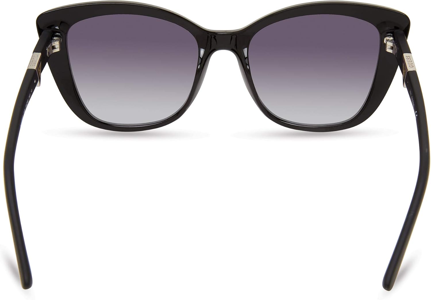 Cat eye plastic front shape, plastic temples with metal triangle décor & GUESS logo