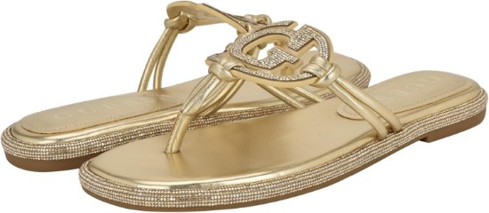 The sandal of the season has arrived, the Guess Saima is here to shine. A cut out G logo embellished with all over rinestones brings a luxe look to your everyday flat sandal. Est. 1981, Guess is a global lifestyle brand and a symbol of a young, adventurous lifestyle.