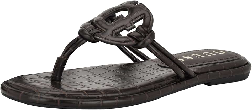 The sandal of the season has arrived, the Guess Saima is here to stay. A cut out G logo upper brings a luxe look to your everyday flat sandal. This thong slip on sandal, features a cushioned insole and flex outole for lasting all-day comfort and fashion!