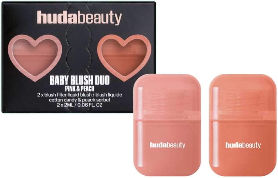Achieve a naturally radiant, ombre blush look with the HUDA BEAUTY Mini Baby Blush Duo Set in Cotton Candy and Peach Sorbet. This limited-edition, travel-friendly duo features two complementary shades—a baby pink and a peachy tangerine—that blend seamlessly for a customizable flush. The lightweight, buildable formula melts into the skin, delivering a soft-focus, airbrushed finish. Perfect for on-the-go touch-ups, this vegan and cruelty-free set is your secret to a youthful, glowing complexion.