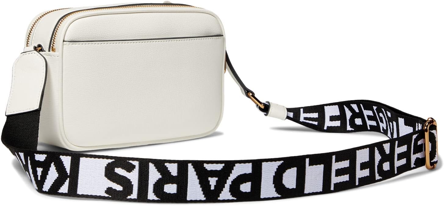 The MAYBELLE CAMERA CROSSBODY is a crossbody bag that closes with a double top zipper. It boasts an exterior with a single back slip pocket and an interior featuring a slip pocket and three card slots. This bag comes with an adjustable crossbody strap and a main strap, measuring 9' W x 6' H x 3' D. It is crafted from imported materials.
