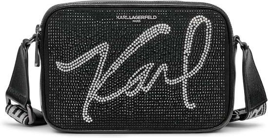 KARL LAGERFELD Women's Maybelle Studded Logo Crossbody, Black/Silver Multi, One Size