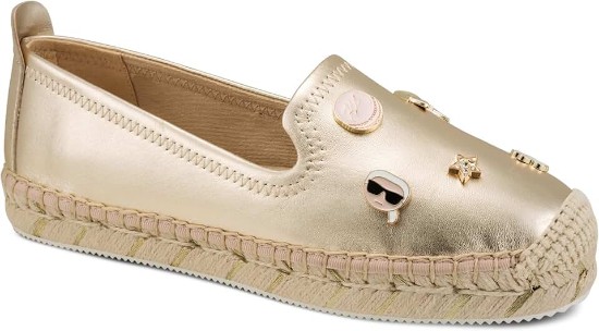 This Karl Lagerfeld Paris Women's Shoes is a Pin Embellishments Slip on Espadrille Closed Toe Flat Sandal