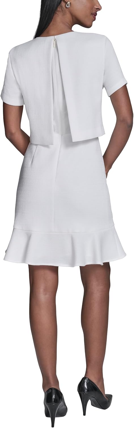 KARL LAGERFELD Women's Short Sleeve Crew Neck Faux Tweed a Line Dress