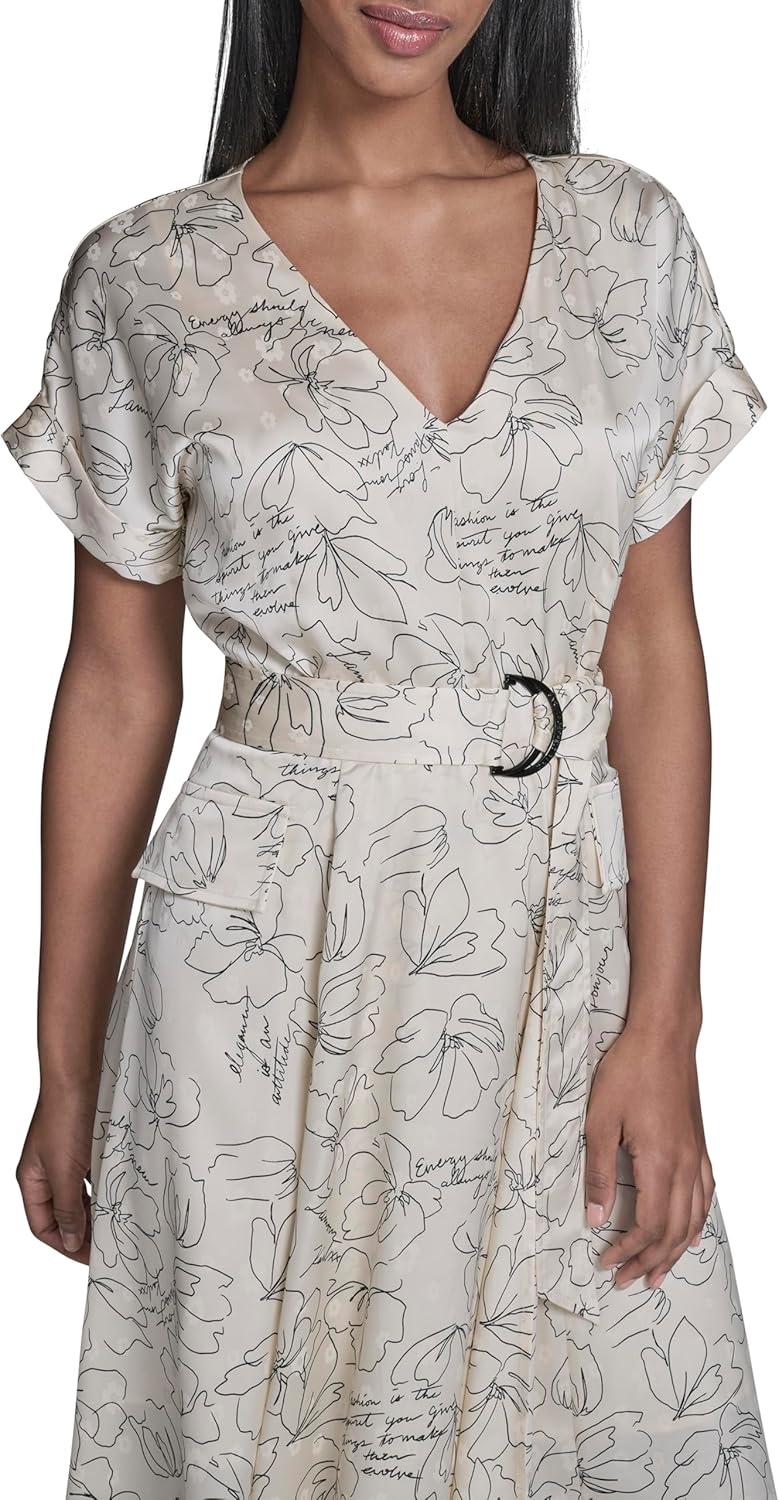 This Karl Lagerfeld Paris Women's Dress is a Short Sleeve V-Neck Aero Wash Midi Belted