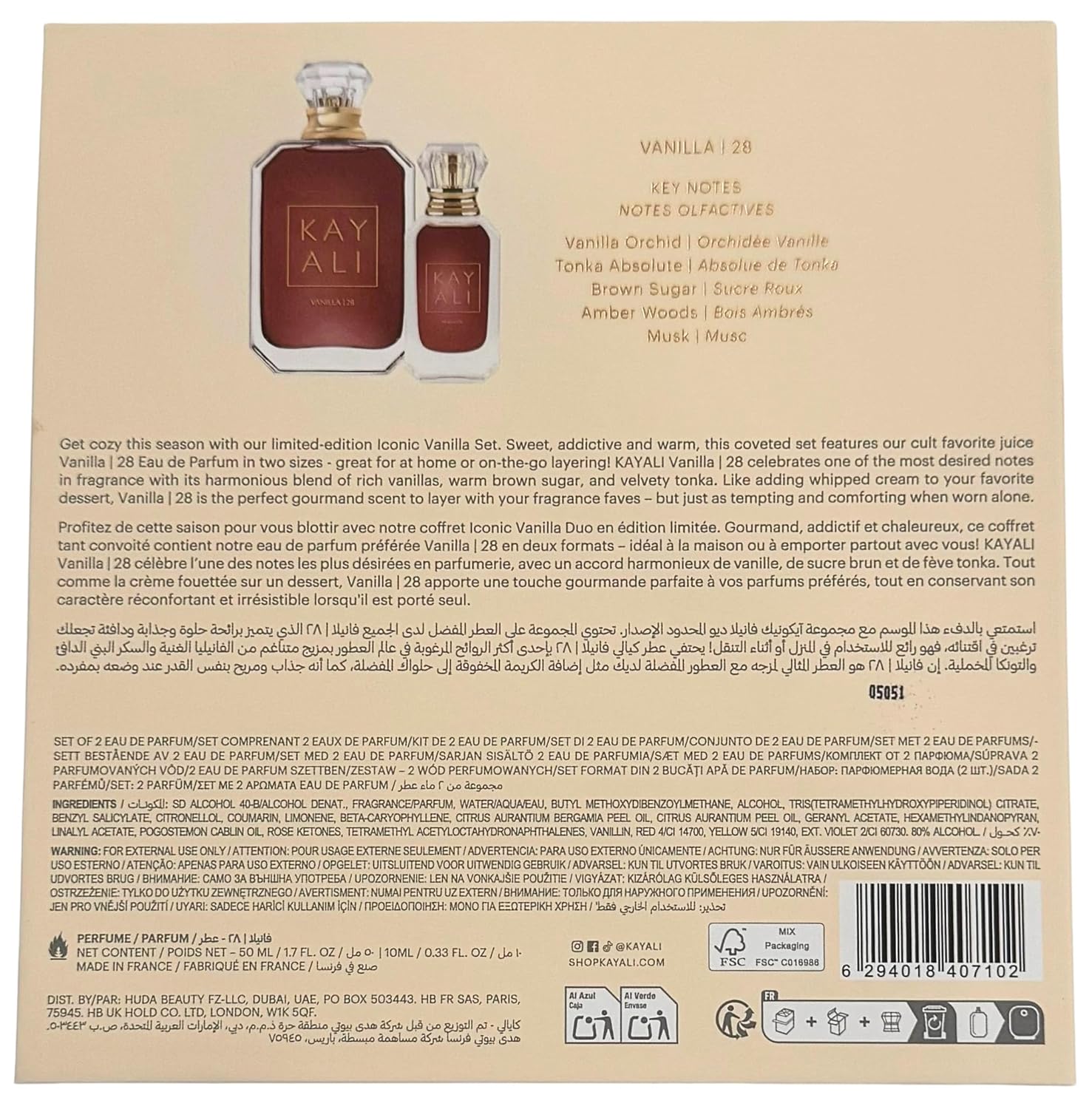Wrap yourself in the warm, addictive scent of Vanilla | 28 with this elegant Iconic Set featuring two Eau de Parfum sizes for home and travel. The fragrance opens with rich vanilla orchid and smooth brown sugar, blending into a heart of tonka absolute and velvety amber woods. Subtle musk adds depth and sophistication, creating a cozy yet sensual aura that lingers beautifully on the skin. Perfect for layering or wearing solo, this luxurious gourmand scent embodies effortless indulgence and timeless allure.