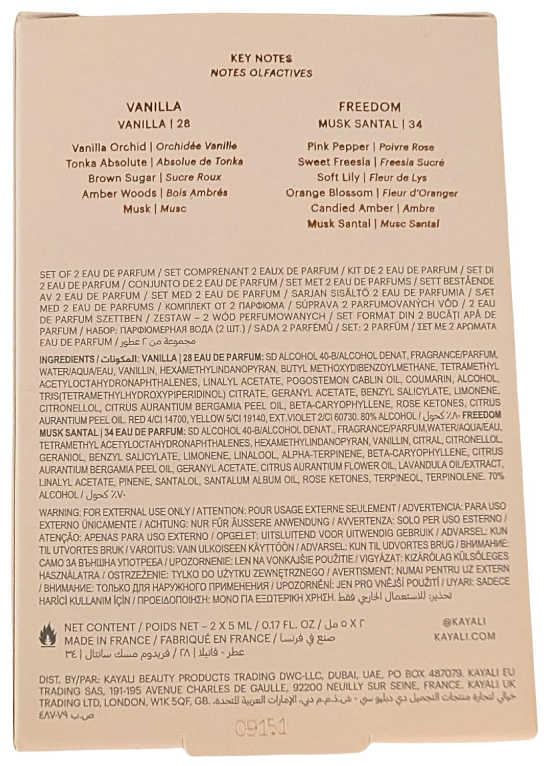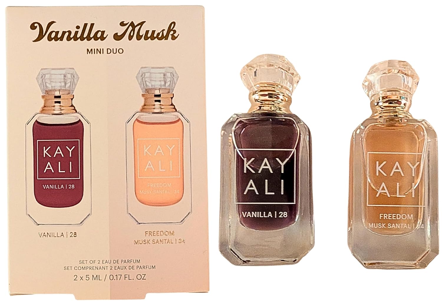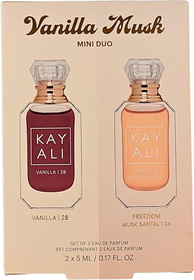 This mini fragrance duo pairs Vanilla 28 with Freedom Musk Santal 34 for a warm, sensual scent experience designed for layering or individual wear. Vanilla 28 features rich vanilla orchid, tonka absolute, brown sugar, amber woods, and soft musk for a deep, comforting sweetness. Freedom Musk Santal 34 blends pink pepper, sweet freesia, soft lily, orange blossom, candied amber, and creamy sandalwood musk for a smooth, radiant finish. Together, the set delivers balance between cozy gourmand warmth and clean, modern musk.