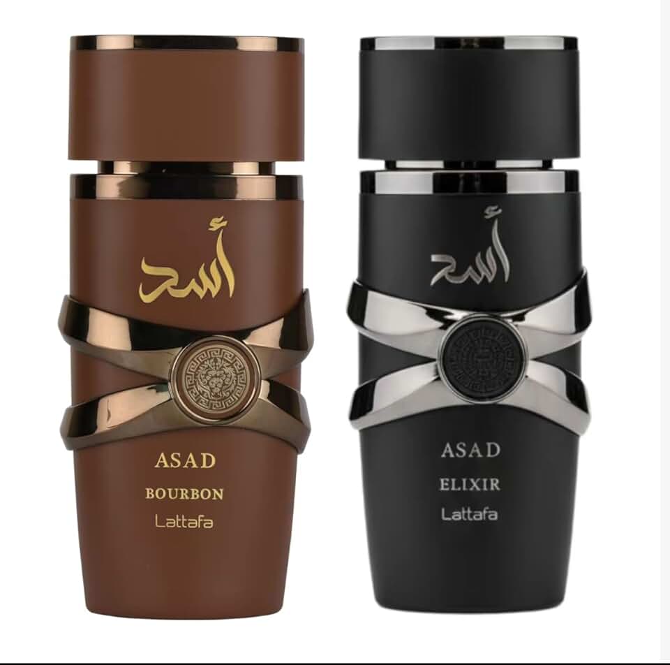 Asad Elixir + Asad Bourbon Luxury DuoA striking duo of refinement and boldness — combine the intense, spicy woody elegance of Asad Elixir with the warm, sophisticated gourmand-woody charm of Asad Bourbon. Whether you’re dressing for powerful daywear or commanding evening presence, this pair delivers.Asad ElixirA concentrated, sharp and smoky evolution. It opens with vivid spice & citrus, dives into a rich woody-t0bacc0 core, and settles into deep resinous, patchouli-laden warmth.Fragrance Notes:·Top Notes: Pink Pepper, Saffron, Grapefruit Lattafa·Middle Notes: T0bacc0, Cedarwood, Vanilla Lattafa·Base Notes: Patchouli, Olibanum (Frankincense), Cashmeran, Dry Amber LattafaVibe: bold smoky dramatic refined For evenings, special occasions, nights when you want to leave a mark.Asad BourbonA sophisticated unisex fragrance with elegance and depth. It opens bright with spice & fruit, moves into rich cacao and nutmeg complexity, and finishes on warm bourbon-vanilla, amber and vetiver. LattafaFragrance Notes:·Top Notes: Lavender, Mirabelle (sweet plum/fruit), Pink Pepper Lattafa·Middle Notes: Cacao, Nutmeg, Davana Lattafa·Base Notes: Bourbon Vanilla, Amber, Vetiver LattafaVibe: warm sophisticated gourmand-woody unisex Perfect for day to night transition, board-room to lounge, or anytime elegance meets comfort.Why This Duo Works·Two complementary yet distinctive scents: one edgy + smoky, the other warm + gourmand.·Full spectrum: top-noted spice & fruit rich heart notes deep long-lasting base.·Layering possibilities: wear each alone for very different moods, or layer to create a unique signature blend.·Ideal gift or personal collection upgrade for fragrance lovers who appreciate quality and character.Style & Layering Tip·Daytime mode: Go with Asad Bourbon for refined warmth and approachability.·Evening mode: Choose Asad Elixir to make a statement—smoky, bold, powerful.·Signature blend: A light spray of Asad Bourbon, followed by a subtle layer of Asad Elixir. You’ll get the sweet-woody gourmand undercurrent of Bourbon with the edgy spice-woody sophistication of Elixir.Limited Bundle OfferUnlock two premium Lattafa masterpieces in one set. Elevate your fragrance game, gift in style, or build your own iconic scent identity