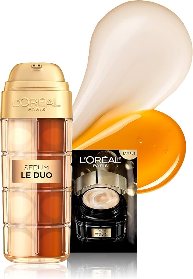 L'Oreal Paris Age Perfect Serum Le Duo, your age-defying serum with 2 serums in 1 to fight 10 signs of aging. Experience the combination of a nourishing, translucent serum with a milky, pearly serum. Formulated with Collagen Peptide to help boost cell renewal, and Vitamins B3 and C to help reignite radiance and even skin tone. Meticulously crafted with its sleek, gold finishes, let Serum Le Duo take you to a moment of pure indulgence as it sets a new standard for luxury serums. In 2 weeks, skin looks firmer. In 8 weeks, wrinkles look reduced and skin looks younger. Dermatologist-tested, made for all skin tones and suitable for even sensitive skin.