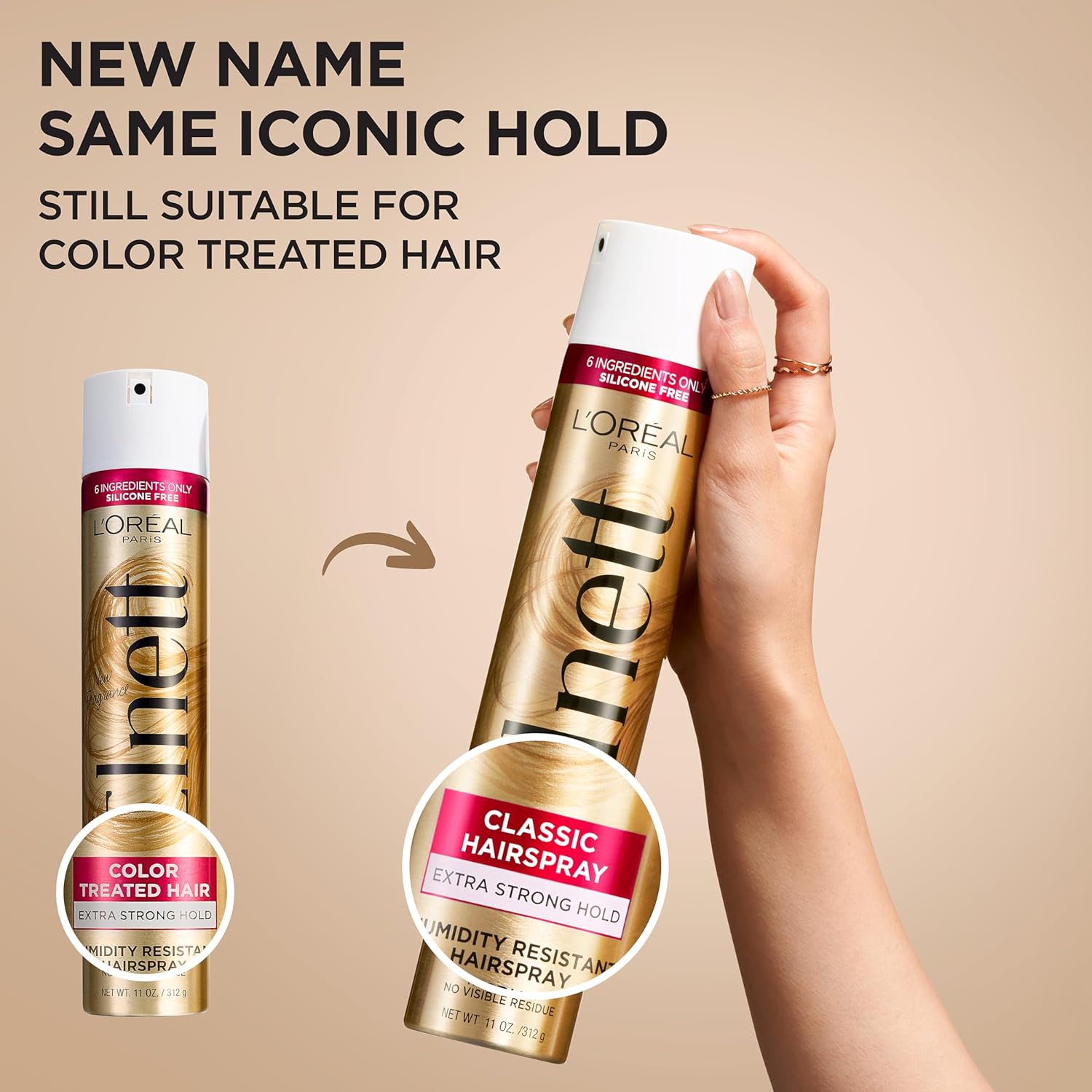 L’Oral Paris Elnett Satin is a legendary hair spray, known as the gold standard for red carpet events and photo shoots. Its ultra fine mist leaves hair feeling clean with a light weight, soft, shiny finish and a satin touch. So strong, it holds style all day. So fine, it disappears at the stroke of a brush. Elnett UV Filter is specifically formulated for the needs of color treated hair and protects the beautiful shine of your color. For perfect hold, complete any hairstyle with an all-over spray. • The finest hairspray used by stylists • Humidity protection • Disappears at the stroke of a brush • Lightweight, soft, shiny finish Remove the security tab and shake can. Spray your style with Elnett in short bursts from about 12 inches away. Flammable. Avoid heat, fire, flame and smoking during use and until hair is completely dry. Avoid spraying in eyes. Contents under pressure. Do not puncture or incinerate. Do not store at temperatures above 120ºF (49ºC). Keep out of reach of children. Use only as directed. Intentional misuse by deliberately concentrating and inhaling contents can be harmful or fatal.