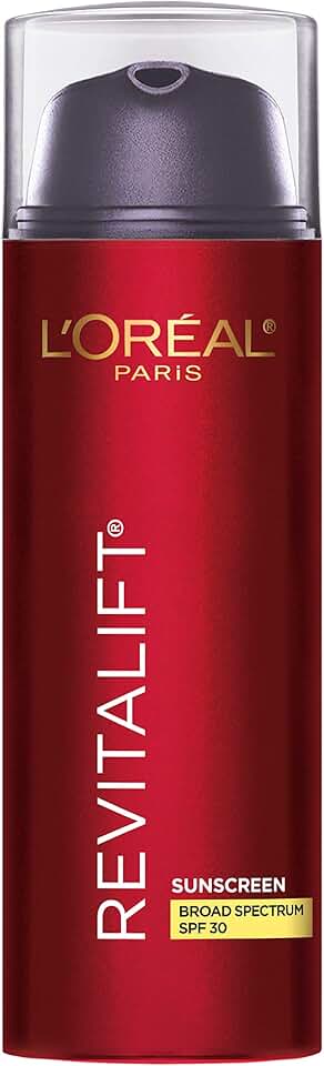 L'Oreal Paris Revitalift Triple Power Broad Spectrum SPF 30 Sunscreen is an anti-aging face moisturizer formulated with 3 of the top derm-recommended ingredients: Pro-Retinol, Hyaluronic Acid and Vitamin C to reduce wrinkles, firm and brighten skin in 1 week. After use skin feels smoother, softer, refreshed. Dermatologist tested, suitable for sensitive skin. Paraben free, mineral oil free, Dye Free, allergy tested. Layers well under makeup.