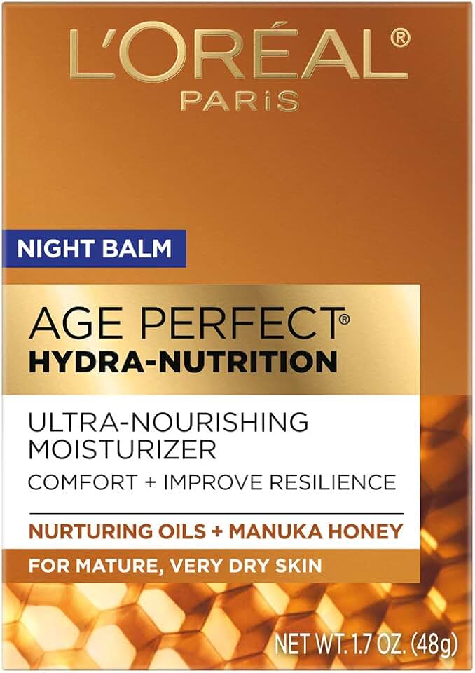 L'Oreal Paris Age Perfect Hydra-Nutrition Night Balm comforts dry skin, firms skin and improves resilience and tone. Age Perfect Hydra-Nutrition Night Balm Face Moisturizer with Manuka Honey Extract intensely nourishes & strengthens dry skin so its more elastic. Enriched with Calcium and Essential Oils, its specially designed for Dry Skin. It offers 48 hour hydration and comfort. Skin is left firmer and more resilient. Manuka Honey is specially sourced from New Zealand. Paraben Free. Mineral Oil Free. Non-Sticky.