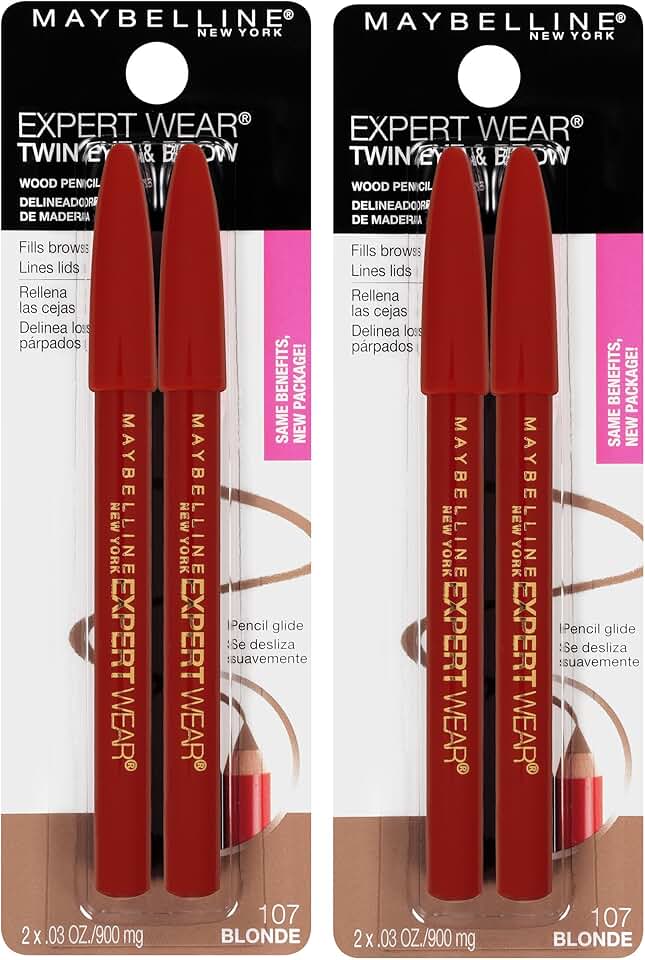 MAYBELLINE New York Expert Wear Twin Brow & Eye Pencils Makeup, Blonde, 2 Count (Pack of 2)