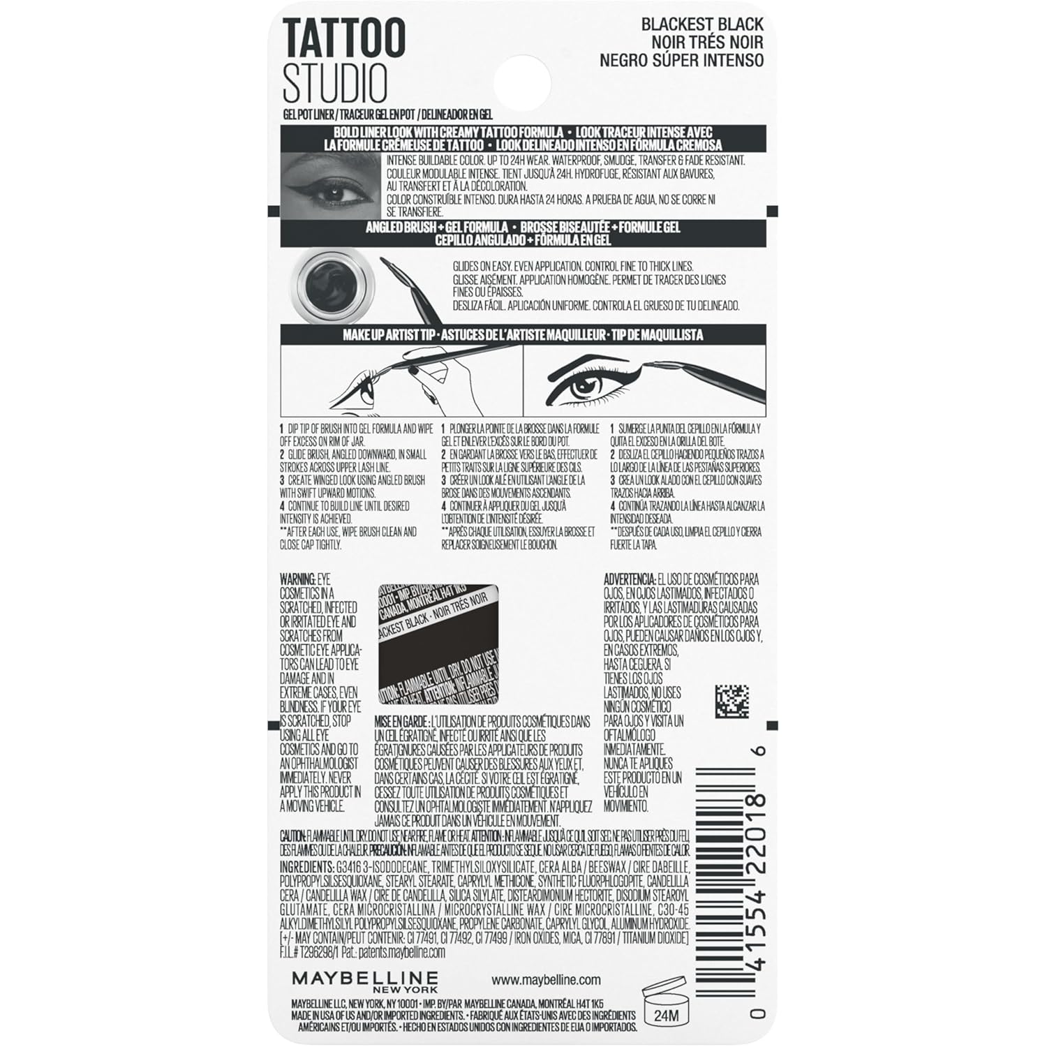 MAYBELLINE New York Makeup Eyestudio Lasting Drama Gel Eye Liner, Blackest Black, Waterproof, 0.106 Ounce,Pack of 1