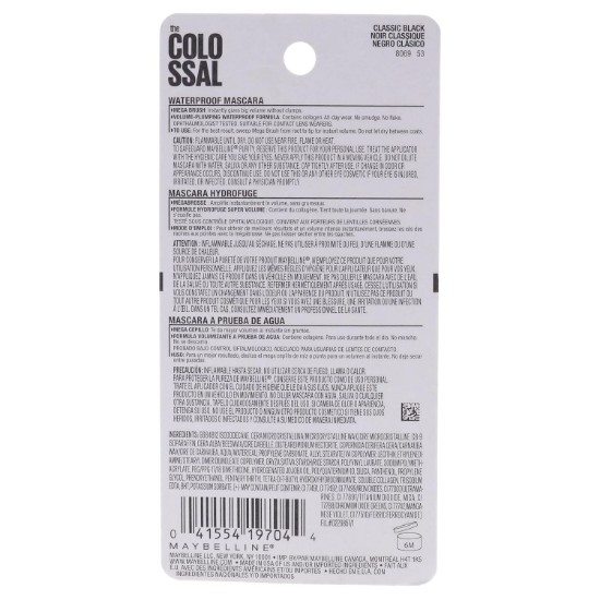 Big, bold, and fast enough to take on NYC, this clump-free washable mascara delivers 9x times the volume in just one coat! Lashes look thicker and more voluminous thanks to the iconic Mega Brush and plumping mascara formula, infused with 2x the collagen. Ophthalmologist tested and suitable for contact lens wearers. Step 1: Sweep the Mega Brush from the root-to-tip of lashes to create instant volume. Step 2: Try not to let the mascara dry in between coats. Step 3: Use Garnier Micellar Water as a gentle makeup remover at night, and as a facial cleanser in the morning to prep skin for Maybelline makeup.