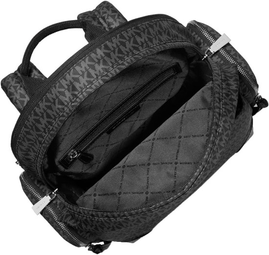 Michael Kors Prescott Large Backpack, Silver-Tone Hardware/Tonal Signature/Black, One Size