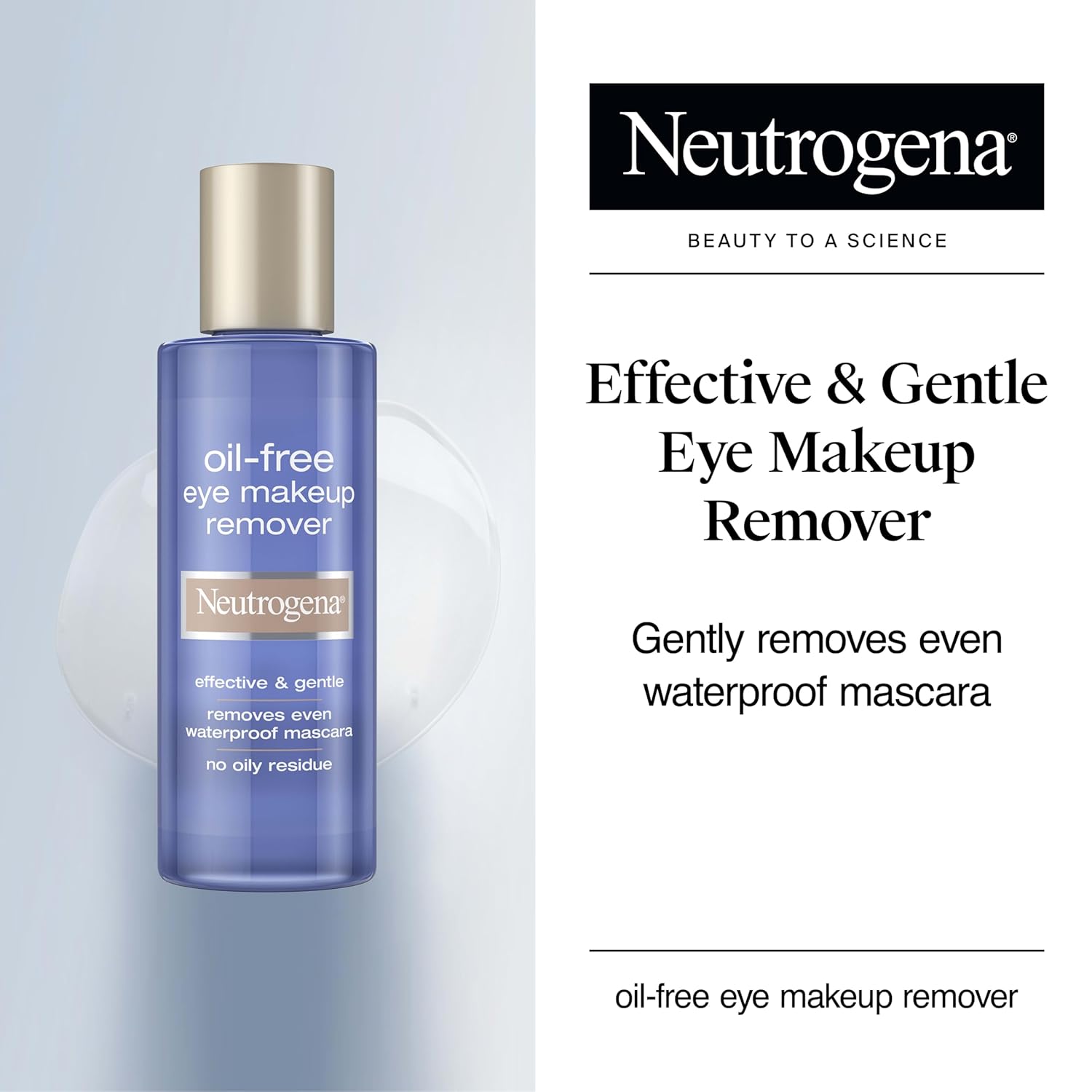Neutrogena Oil-Free Eye Makeup Remover provides gentle, effective cleansing for the delicate eye area. This dual-phase liquid activates when shaken to effortlessly dissolve eye makeup, including waterproof mascara, without tugging. Enriched with aloe and cucumber, it soothes skin while conditioning and softening lashes. 100% oil-free and non-greasy, it leaves no residue and is ophthalmologist tested, safe for sensitive eyes and contact lens wearers. Simplify your routine with this dermatologist-developed, liquid makeup remover that rinses easily, leaving skin clean, refreshed, and soft. Ideal as a daily eye makeup cleanser and mascara remover alternative to harsh oils. Shake well and apply with a cotton pad to closed eyelids and rinse with warm water.