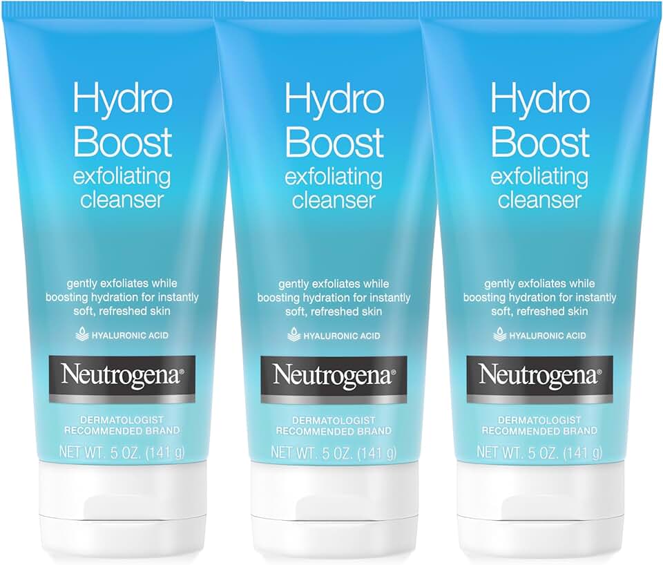 Experience refreshed, hydrated skin with this Neutrogena Hydro Boost Exfoliating Face Wash with hyaluronic acid. This daily facial cleanser gently exfoliates and hydrates, making it a great face wash for women and men. Formulated with naturally derived skin smoothers, this exfoliating face scrub effectively removes dirt, oil, and dry skin while supporting healthy skin exfoliation. Infused with hyaluronic acid, an ingredient known for its moisturizing properties, it leaves skin soft, clean, and hydrated after each use. Clinically proven to boost hydration, this hydrating facial scrub locks in moisture for instantly supple, refreshed skin. The non-comedogenic formula won’t clog pores and is gentle enough for daily use. From a dermatologist-recommended brand, this lightweight gel-cream Neutrogena face wash is formulated without soap, oil, and parabens - an ideal addition to your facial skin care products and cleansing routine.