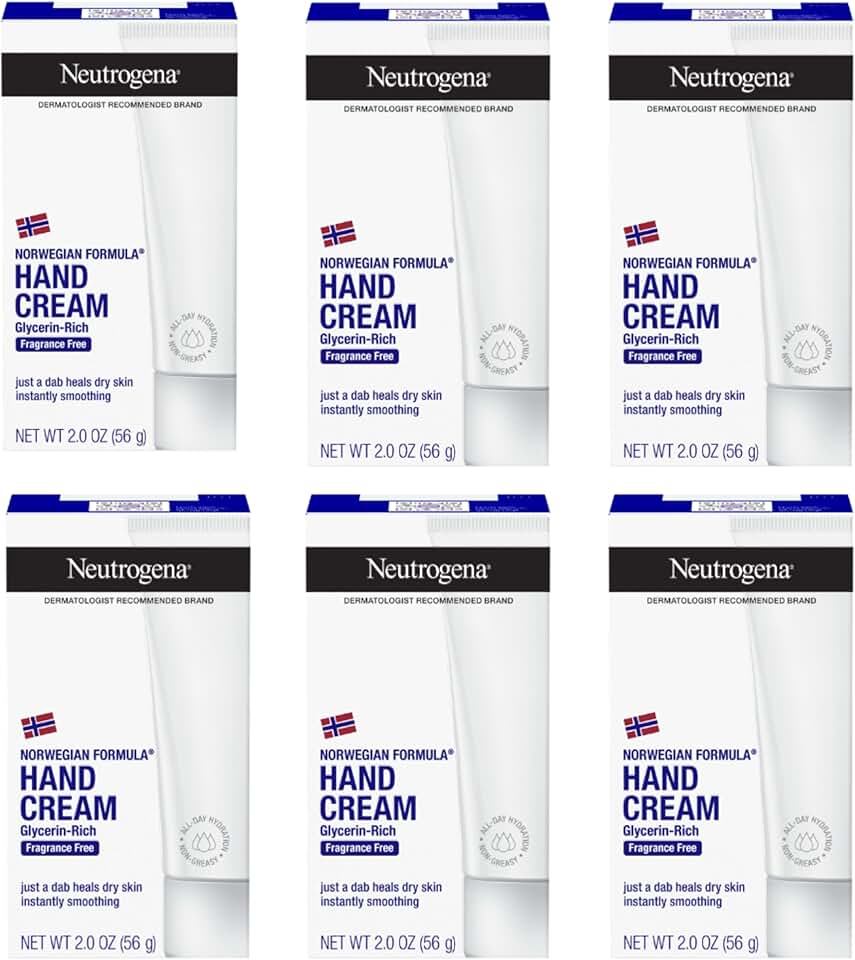 Neutrogena Norwegian Formula Moisturizing Hand Cream is a fragrance-free lotion formulated with concentrated glycerin to provide effective relief for rough, dry hands. This value pack includes six travel size 2-ounce tubes, each delivering over 200 applications of intensive, non-greasy hydration. Designed as a hand cream to help heal dry skin, it nourishes and moisturizes skin, leaving hands feeling softer and smoother. The unscented, moisturizing lotion is suitable for daily and overnight use to soothe dryness caused by frequent hand washing or exposure to harsh conditions. Only a small amount is needed for immediate and lasting relief, making it an ideal hand moisturizer for home, work, or on the go. Neutrogena Norwegian Formula is trusted for its concentrated formula, supporting your hand care routine wherever you need it. This hand lotion for dry skin is perfect for those seeking a fragrance-free lotion that delivers intensive moisture support and effective soothing relief for rough, dry skin. The non-greasy, fast-absorbing formula comes in a travel size lotion tube convenient for use at home, in the office, or while traveling. Incorporate this moisturizing lotion into your daily regimen to help prevent and soothe dry skin and experience the benefits of a hand cream for rough, dry hands. With six tubes in each pack, you can keep one in your bag, at your desk, and in your car, ensuring soothing relief is always within reach. Choose Neutrogena Norwegian Formula for a hand cream for rough, dry hands that combines concentrated glycerin and fragrance-free comfort in a convenient, travel size lotion format.