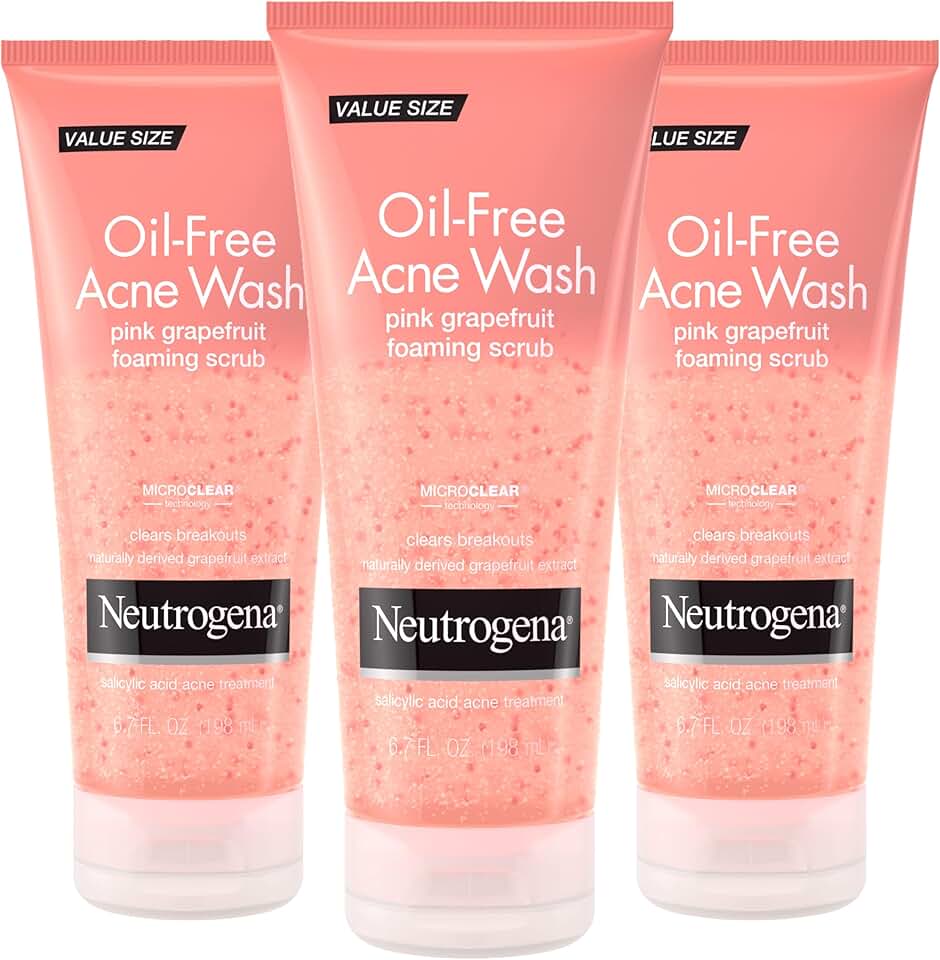 Product Description Achieve clear, radiant skin with Neutrogena Oil-Free Acne Face Wash Pink Grapefruit Foaming Scrub. Specially formulated for women with oily or acne-prone skin, this daily face scrub delivers powerful exfoliation and effective treatment for breakouts. Infused with maximum-strength salicylic acid, it penetrates deep into pores to unclog and fight stubborn acne, while gentle microbeads sweep away dead surface skin and excess oil for a smoother, more refreshed appearance. The invigorating pink grapefruit scent revitalizes your senses, and the rich foaming action provides a thorough cleansing experience without over-drying your skin. Simply apply to wet face or body, gently massage, and rinse for instantly cleaner, healthier skin. Perfect for daily use, this acne scrub helps maintain a clear complexion and prevents future breakouts. For optimal results, incorporate this acne wash alongside other trusted Neutrogena acne treatments and moisturizers. As a dermatologist-recommended brand, Neutrogena has been delivering innovative, science-backed solutions for healthier skin for decades. Let Neutrogena help you reveal your best, most confident self every day. From the Manufacturer Neutrogena Oil-Free Acne Wash Pink Grapefruit Foaming Scrub powerfully clears blemishes and blackheads with maximum strength Salicylic Acid acne medicine plus an uplifting blast of grapefruit. With 100% naturally derived grapefruit extract and vitamin C, Neutrogena Oil-Free Acne Wash Pink Grapefruit Foaming Scrub features gentle microbeads that smooth away roughness without over-drying or irritating your skin.
