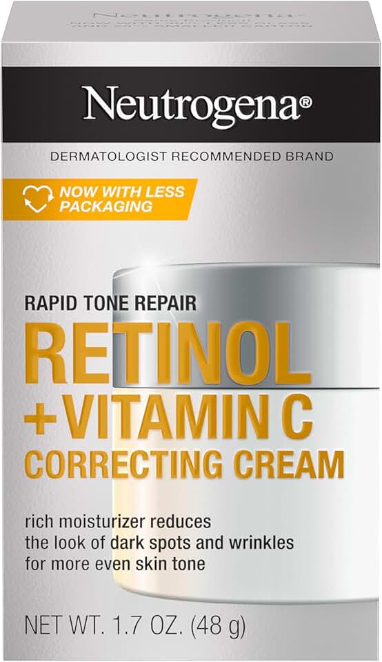 Visibly brighten, smooth, and even your complexion with Neutrogena Rapid Tone Repair Retinol + Vitamin C Correcting Cream. This brightening, anti-aging moisturizer helps reduce the look of dark spots, wrinkles, and discoloration for a more radiant, youthful glow. Clinically proven, this tone evening cream combines pure retinol, a dermatologist-proven form of vitamin A that targets fine lines and dullness, with vitamin C, an antioxidant known to diffuse the look of dark spots and improve skin tone. Infused with hyaluronic acid and glycerin, this moisturizer delivers plumping, long-lasting hydration to smooth and refresh skin texture. Formula free from parabens, mineral oil, and dyes, this daily retinol cream works to rejuvenate dull, aging skin while maintaining moisture balance. Apply evenly to cleansed face and neck once or twice daily as part of your AM or PM skincare routine for visibly renewed, glowing skin.